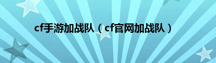 以上就是【cf手游加战队,cf官网加战队】相关内容。