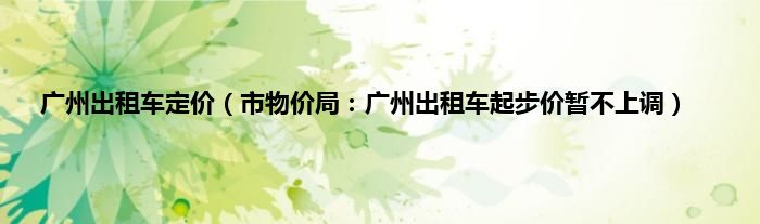 本文,广州出租车定价,市物价局:广州出租车起步价暂不上调到此就分享完毕,希望对大家有所帮助。