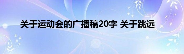 大家好,小问来为大家解答以上问题。关于运动会的广播稿20字 关于跳远这个很多人还不知道,现在让我们一起来看看吧!