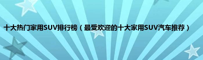 本文,十大热门家用SUV排行榜,最受欢迎的十大家用SUV汽车推荐到此就分享完毕,希望对大家有所帮助。