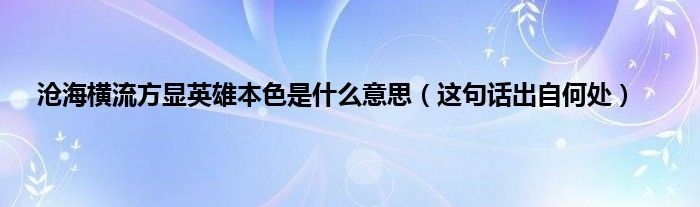 大家好,沧海横流方显英雄本色是什么意思,这句话出自何处很多人还不知道,现在让我们一起来看看吧!