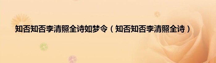 本文,知否知否李清照全诗如梦令,知否知否李清照全诗到此就分享完毕,希望对大家有所帮助。