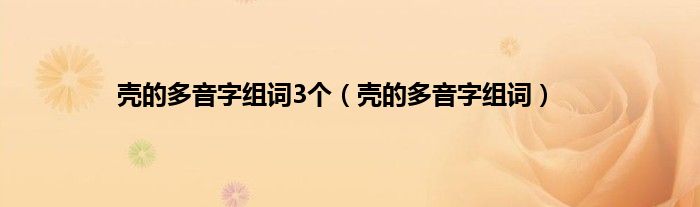 本文,壳的多音字组词3个,壳的多音字组词到此就分享完毕,希望对大家有所帮助。