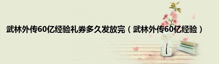 大家好,小问来为大家解答以上问题。武林外传60亿经验礼券多久发放完,武林外传60亿经验这个很多人还不知道,现在让我们一起来看看吧!
