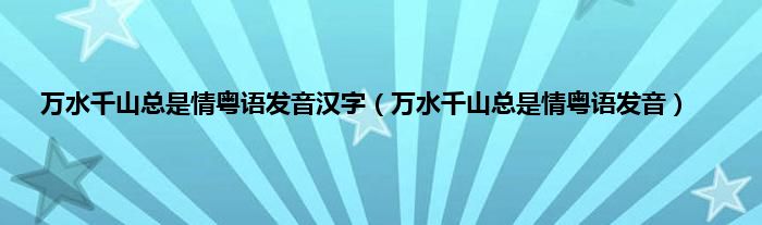 大家好,小问来为大家解答以上问题。万水千山总是情粤语发音汉字,万水千山总是情粤语发音这个很多人还不知道,现在让我们一起来看看吧!