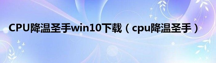 大家好,小问来为大家解答以上问题。CPU降温圣手win10下载,cpu降温圣手这个很多人还不知道,现在让我们一起来看看吧!