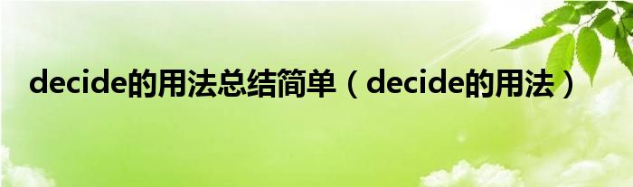 decide的用法总结简单(decide的用法)