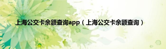 本文,上海公交卡余额查询app,上海公交卡余额查询到此就分享完毕,希望对大家有所帮助。
