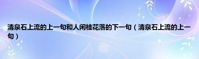大家好,清泉石上流的上一句和人闲桂花落的下一句,清泉石上流的上一句很多人还不知道,现在让我们一起来看看吧!