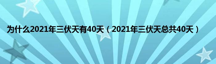 本文,为什么2021年三伏天有40天,2021年三伏天总共40天到此就分享完毕,希望对大家有所帮助。
